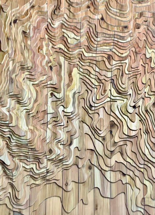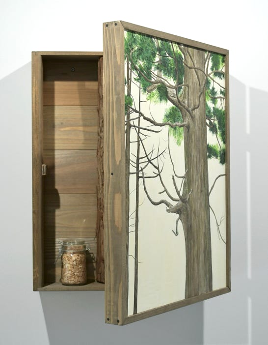 素材:スギ材、アクリル塗料、油絵具