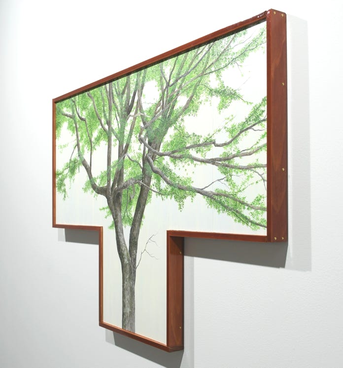 素材:スギ材、アクリル塗料、油絵具、