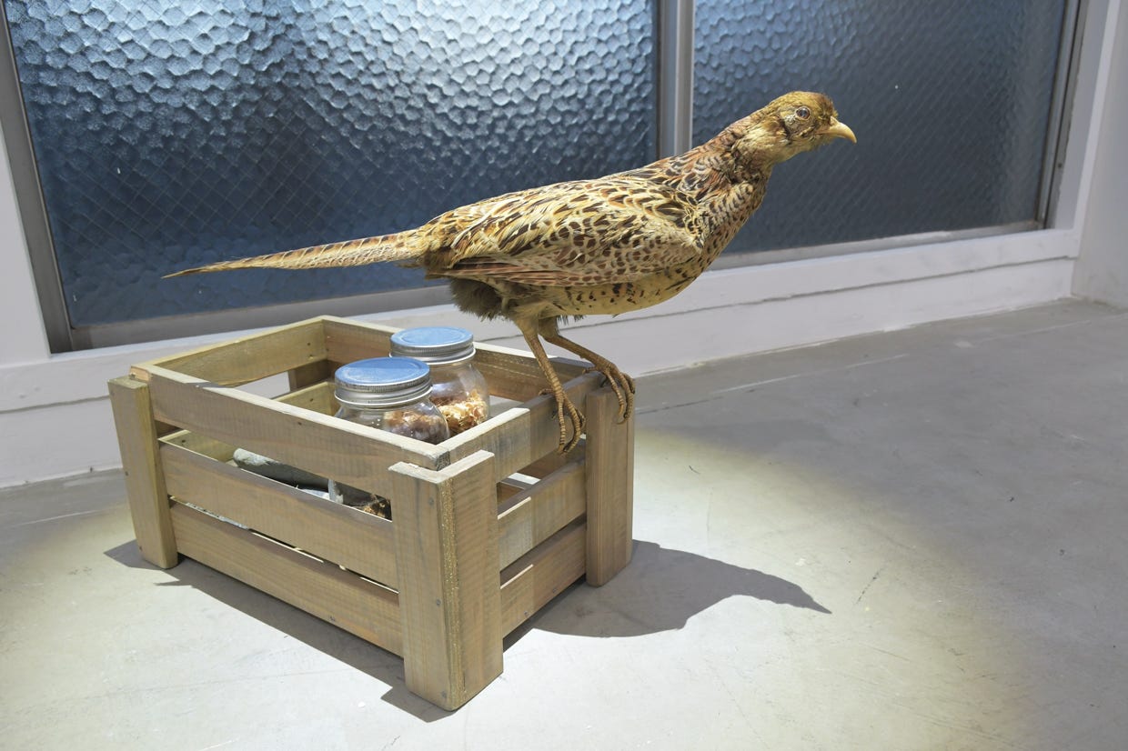 素材:アクリル塗料、針金、スギ材等